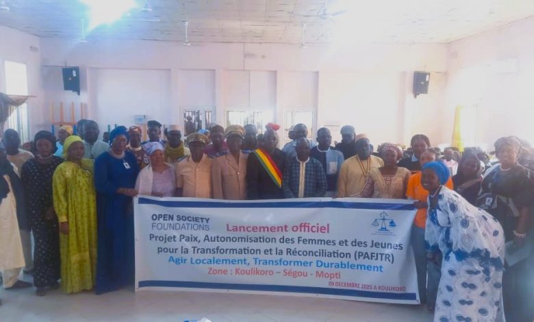 La maison de la femme de Koulikoro a été le cadre Koulikoro, ce 9 décembre 2025 du lancement officiel du projet « Paix, Autonomisation des Femmes et Jeunes pour la Transformation et la Réconciliation » (PAFJTR), porté par le WILDAF/Mali et soutenu financièrement par Open Society Foundations. Avec un budget total de 450 000 dollars USD sur une durée de trois ans, ce projet ambitieux vise à renforcer la participation active des femmes et des jeunes dans la gestion pacifique des conflits et dans la prévention de l’extrémisme violent.